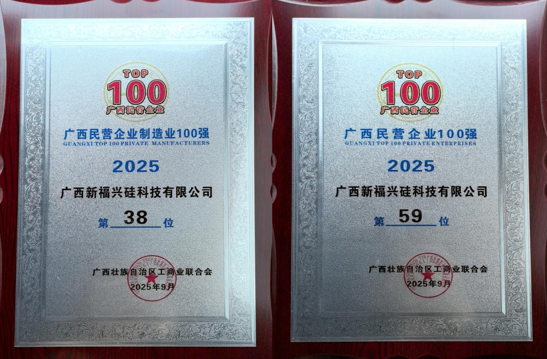 2025年11月1日,由廣西壯族自治區(qū)工商業(yè)聯(lián)合會(huì)主辦的“2025廣西民營(yíng)企業(yè)100強(qiáng)”發(fā)布會(huì)在南寧舉行。會(huì)上正式發(fā)布了“2025廣西民營(yíng)企業(yè)100強(qiáng)”與“2025廣西制造業(yè)民營(yíng)企業(yè)100強(qiáng)”榜單。廣西新福興硅科技有限公司憑借穩(wěn)健的經(jīng)營(yíng)表現(xiàn)、持續(xù)的創(chuàng)新投入及在制造業(yè)領(lǐng)域的扎實(shí)深耕,成功入選該兩項(xiàng)權(quán)威榜單,分別位列第59位和第38位。